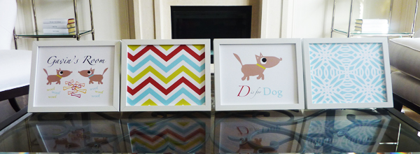 ![]() Friendship Dogs $17.99 D is for Dog, will you be my friend? This set of 4 children’s print will match any nursery theme you have at home. A page showing a single dog, and a page showing two dogs along with red, orange and yellow bones and your child’s name custom printed, this set is perfect for children art. The soft colours of brown, red, light blue, and citron green in the zig zag pattern make it easy to match any nursery room. |