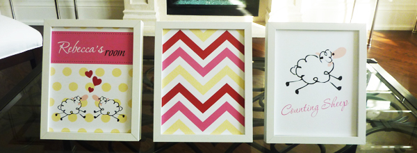 ![]() Counting sheep - pink $14.99 Every new mom knows how important sleep is; if you can’t fall asleep when you’re supposed to, try counting sheep! This adorable children’s print set features your child’s name printed above two sheep in love with red hearts floating between them. The faint yellow polka dot pattern behind the sheep adds an element of fun. It is accompanied by a jumping sheep and red, pink & yellow zig zag patterns. |