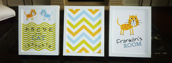 ![]() Cats and Alphabets $14.99 One kitty, two kitty, three kitty, four…help your child learn his ABCs, 123s and more! Take home this adorable 3 page cat print set. One page has your child’s name printed below an orange spotted kitten, another page has an orange spotted kitten and a blue spotted kitten with the alphabets and numbers below, and the third page is a zig zag pattern in orange, lime green & light blue colours. This colourful pattern will add a punch of colour to your baby nursery room. |