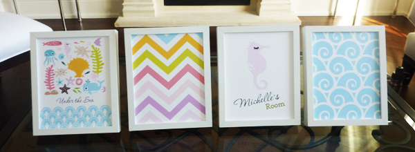 ![]() Under the Sea $17.99 “Darling, it’s better Under the Sea”! Create an aquatic themed baby room for your little girl! This set of 4 children’s print is the perfect children's wall art. It features a page with different types of sea creatures including a fish, a seahorse, an octopus, a starfish, a whale, and different plantlife in the sea. There is also a page with your baby girl’s name custom printed under a seahorse. The colourful zig zag pastel pink, purple and blue colours as well as the blue wave like swirls will enhance the youthful fun in your baby room! |