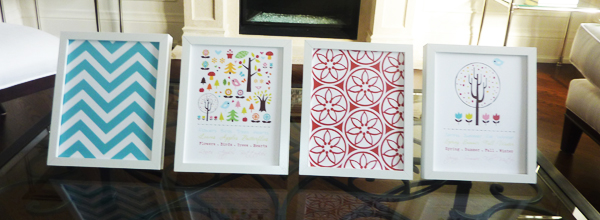 ![]() Flowers, Birds, Trees, Hearts, Apples and Butterflies $17.99 Your baby room décor should be bright and lively. Take home this colourful collage of flowers, hearts, leaves, mushrooms, tulips, trees, birds, apples, and butterflies and it will instantly add joy and warmth to your baby nursery room. This set of four children’s print can be used as wall decals or placed in a photo frame. The zig zag print is in turquoise and the flower patterned print is in red. |